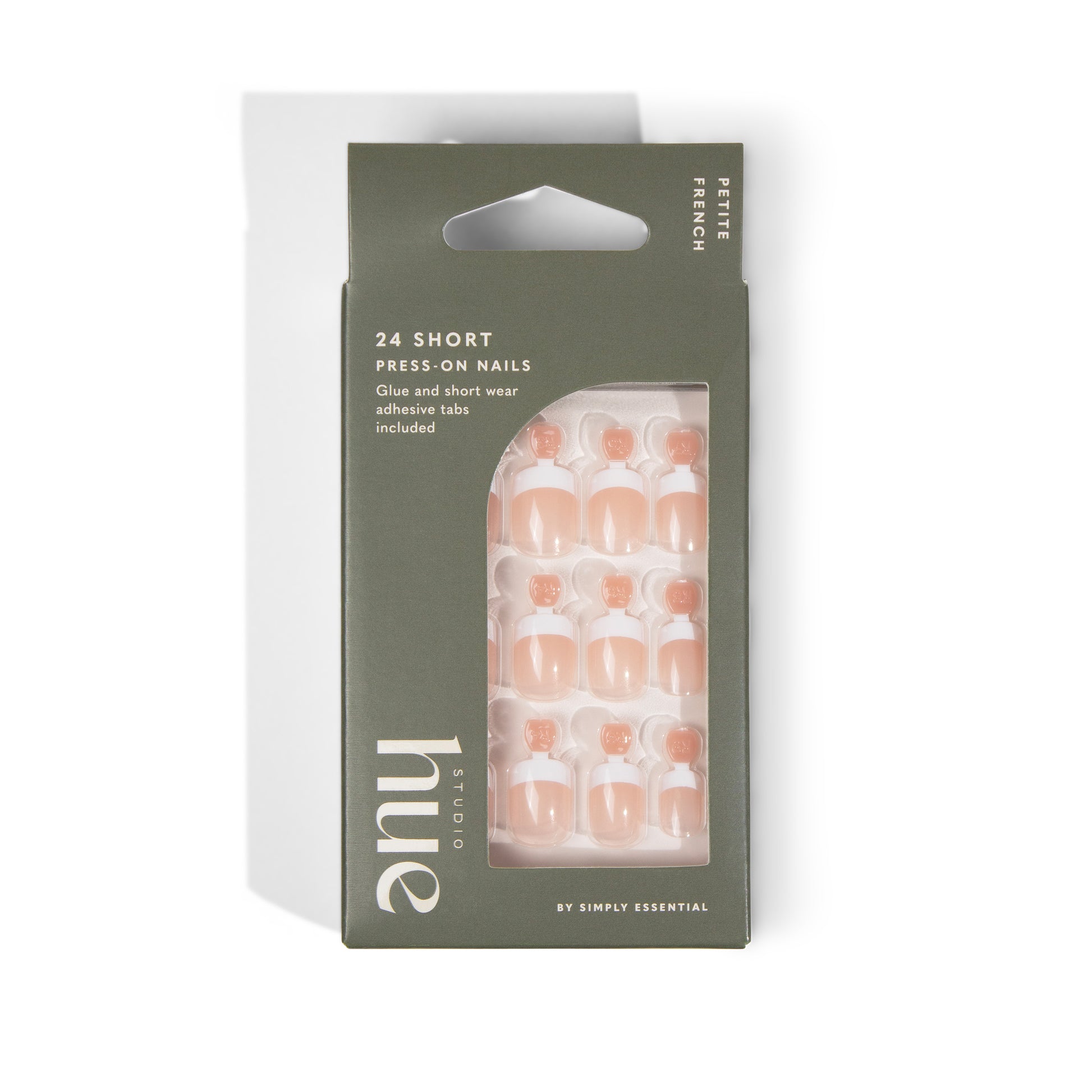 Short and sweet but ever so chic! Petite French is a classic white french tip in a short squoval shape complete with handles for easy application. Simply snap and file after applying to the natural nail.
